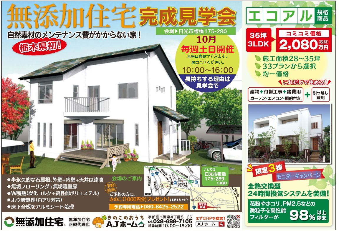 栃木県初・無添加住宅の家。ぜひご体感ください!